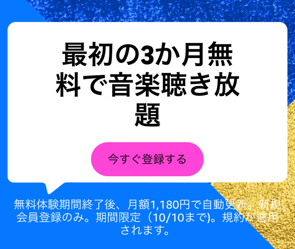 Amazon MusicUnlimited 最初の3カ月無料 『10月10日まで』