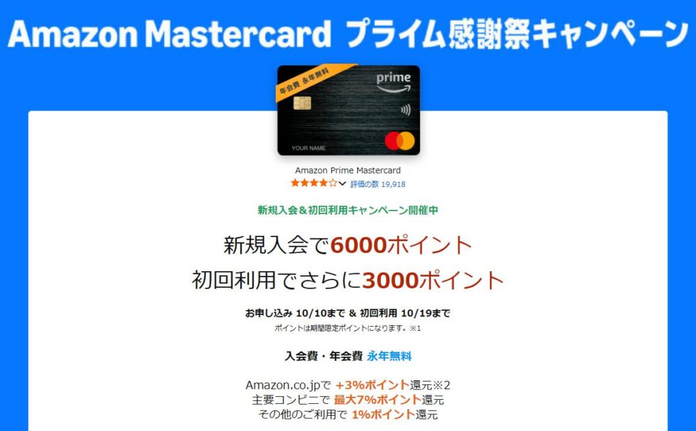 Amazon プライムマスターカード、今なら新規入会&初回利用キャンペーンやってます!